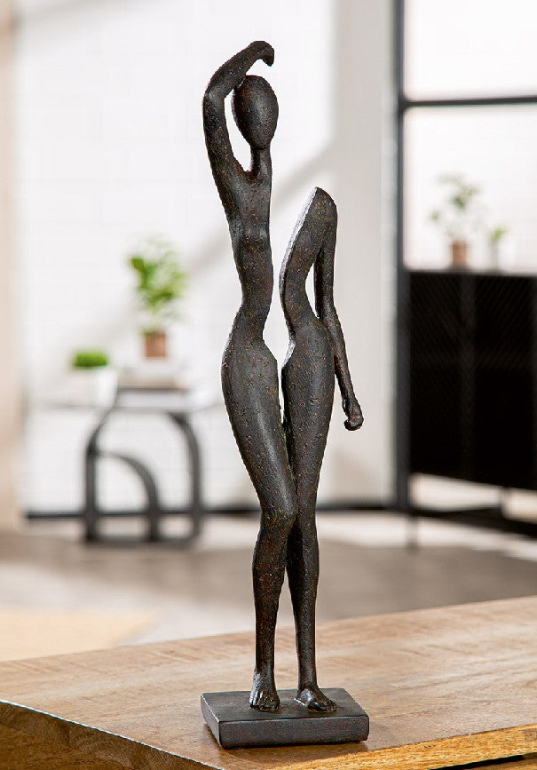 Die abstrakte Form, die zwei Figuren andeutet, symbolisiert Nähe und Dualität – ein dekoratives Highlight, das sowohl einzeln als auch in Kombination mit weiteren Skulpturen stilvoll wirkt. Dank der Filzgleiter an der Unterseite schützt sie Oberflächen und steht stabil.