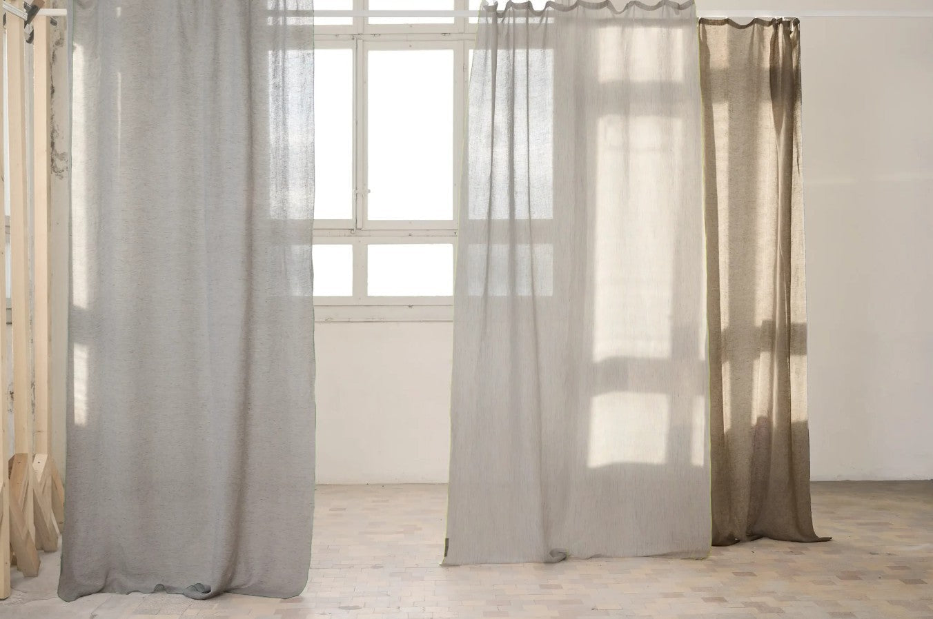 Halbtransparenter Leinenvorhang Gingerino in Hellgrau, Taupe oder Multicolor – natürlich, leicht und limitiert.