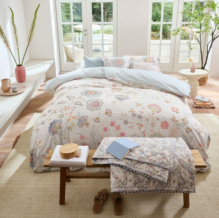 Florale, elegante Bettwäsche aus weicher Percal-Baumwolle – für erholsamen Schlaf und eine stilvolle, entspannende Schlafzimmeratmosphäre.