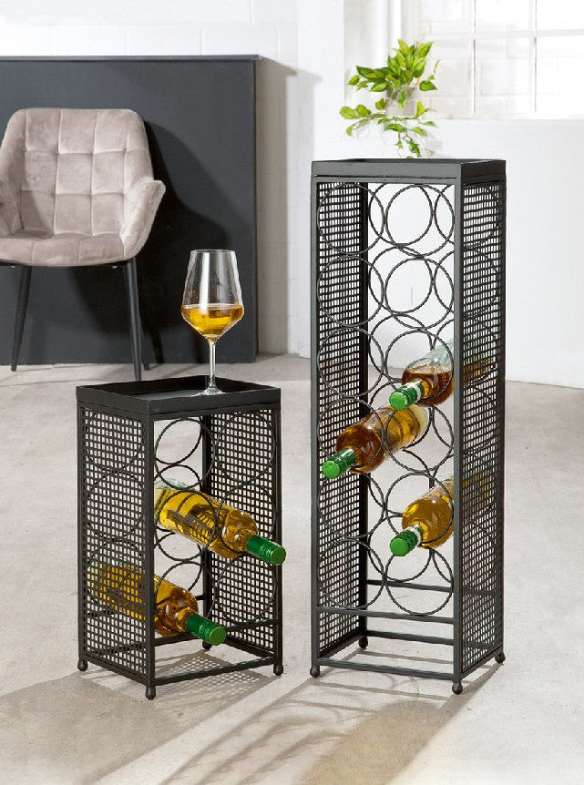 Elegantes Weinregal Renato aus schwarzem Metall in zwei Grössen. Stilvoll, praktisch und einladend – für die perfekte Weinpräsentation bei Ihren Weinabenden.
