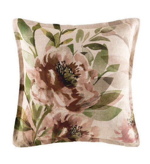 Der kunstvolle Blumendruck in warmen Rosé- und Grüntönen schenkt Ihrem Sofa, Sessel oder Schlafzimmer eine ruhige, wohnliche Atmosphäre.